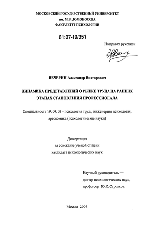 Описание эмпирического исследования динамики представлений о рынке труда на ранних этапах становления профессионала 62