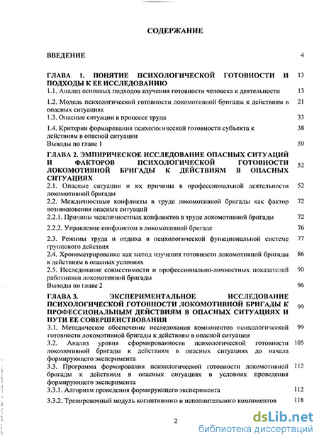 ГЛАВА 3. Экспериментальное исследование психологической готовности локомотивной бригады к 99 профессиональным действиям в опасных ситуациях и пути ее совершенствования