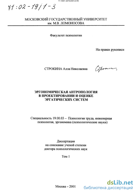 Цель настоящей работы - разработка теоретических, методологических и практических основ комплексного морфо-психологического направления исследований в эргономике, названного эргономической антропологи-ей.