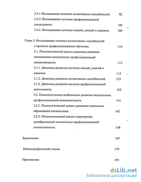 Глава 3. Исследование генезиса когнитивных способностей в процессе профессионального обучения . 114