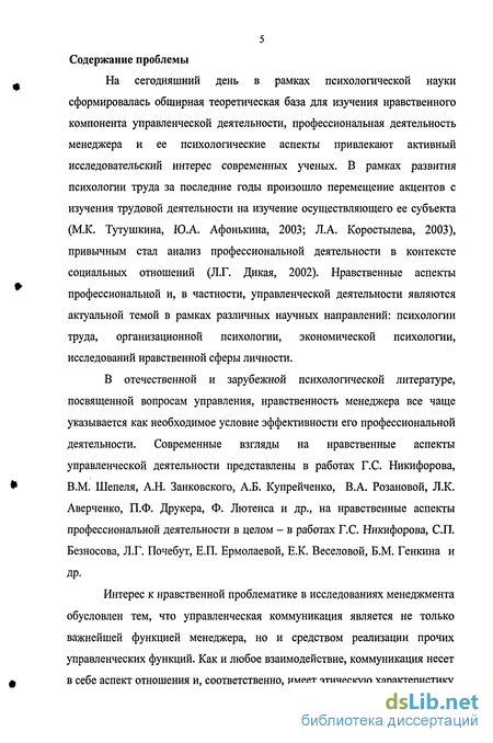 В отечественной и зарубежной психологической литературе, посвященной вопросам управления, нравственность менеджера все чаще указывается как необходимое условие эффективности его профессиональной деятельности. Современные взгляды на нравственные аспекты управленческой деятельности представлены в работах Г.С. Никифорова, В.М. Шепеля, А.Н. Занковского, А.Б. Купрейченко, В.А. Розановой, Л.К. Аверченко, П.Ф. Друкера, Ф. Лютенса и др., на нравственные аспекты профессиональной деятельности в целом - в работах Г.С. Никифорова, СП. Безносова, Л.Г. Почебут, Е.П. Ермолаевой, Е.К. Веселовой, Б.М. Генкина и
