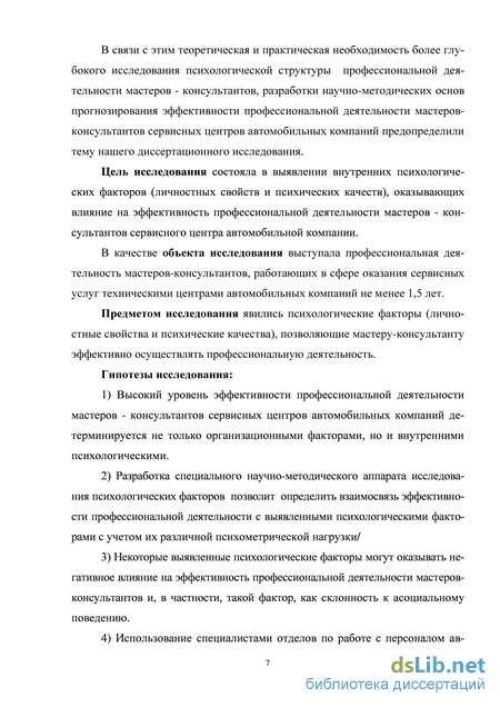 В связи с этим теоретическая и практическая необходимость более глубокого исследования психологической структуры профессиональной деятельности мастеров - консультантов, разработки научно-методических основ прогнозирования эффективности профессиональной деятельности мастеров-консультантов сервисных центров автомобильных компаний предопределили тему нашего диссертационного исследования.