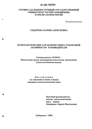Предмет исследования - психологические характеристики субъектной активности личности руководителя.