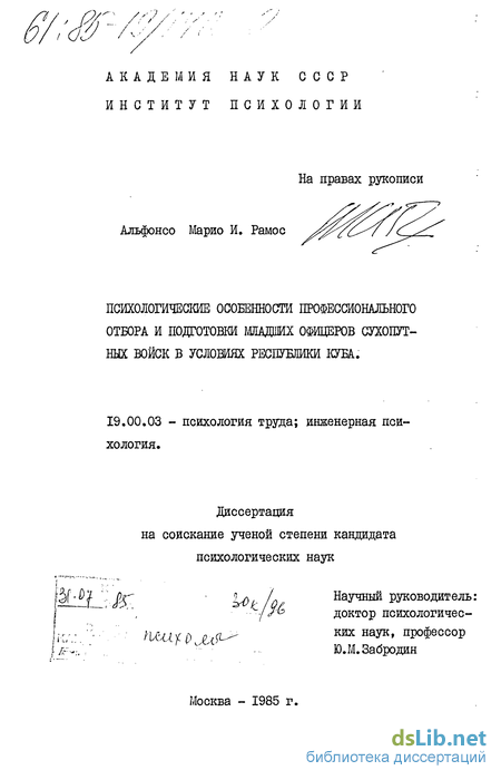 Глава I. Психологические особенности профессионального отбора и подготовки младших офицеров сухопутных войск РВС Кубы, оценка их профессиональной пригодности к командованию подразделением 15