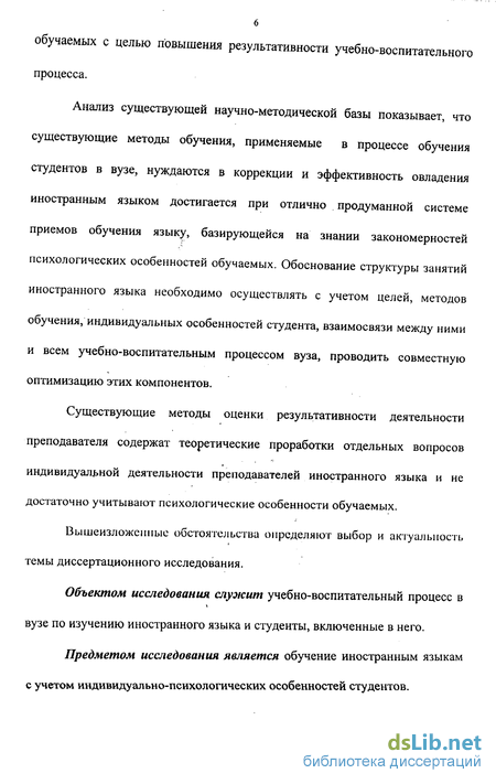 Объектом исследования служит учебно-воспитательный процесс в вузе по изучению иностранного языка и студенты, включенные в него.