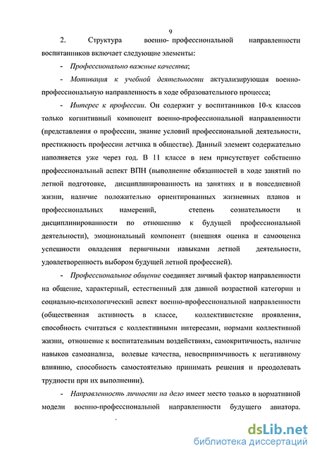 о военно-профессиональной направленности, реализоваЕШые в военной психологии (М.И. Дьяченко, Н.Ф. Феденко, М.П. Коробейников, Ю.П. Зуев, А.И. Александров, Л.Ф. Железняк) и в военно-авиационной психологии (В.А. Пономаренко, Д.В. Гандер, Н.Д. Лысаков), как важнейшем психологическом факторе обеспечения высокой боевой готовности подразделений и частей.