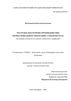 2.5. Природа и предметное содержание профессионального выгорания с позиций субъектно-ресурсного подхода: ресурсы противодействия выгоранию и их классификация 191
