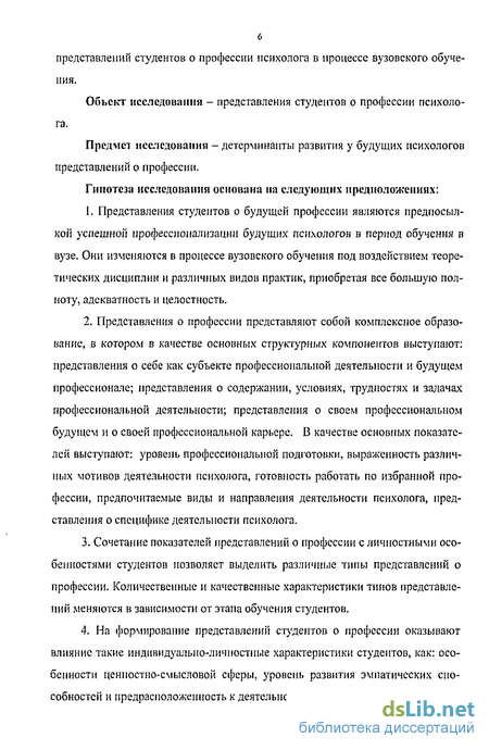 Предмет исследования - детерминанты развития у будущих психологов представлений о профессии.
