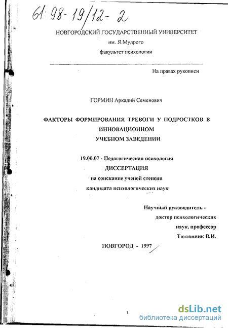 В диссертации впервые описаны и систематизированы факторы формирования тревоги у подростка в процессе обучения.
