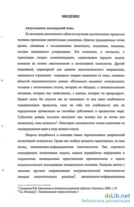 Селиванов В.В. Мышление в личностном развитии субъекта. Смоленск, 2003, с. 12 См. Фоллмер Г. Эволюционная теория познания. М., 1998