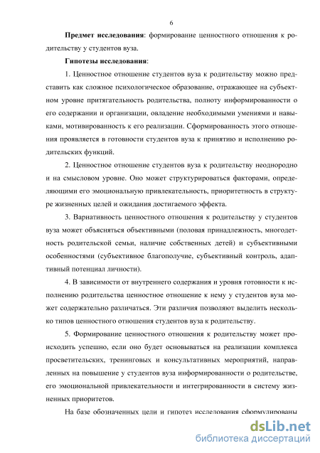 Предмет исследования: формирование ценностного отношения к родительству у студентов вуза.