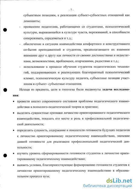 • определить сущность, содержание и показатели готовности будущих педагогов к личностно ориентированному педагогическому взаимодействию, значение данной готовности для реализации профессиональной педагогической деятельности;