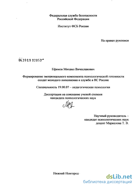 Глава 1. Научно-теоретические основы эмоционального компонента психологической готовности к службе в ВС России 12