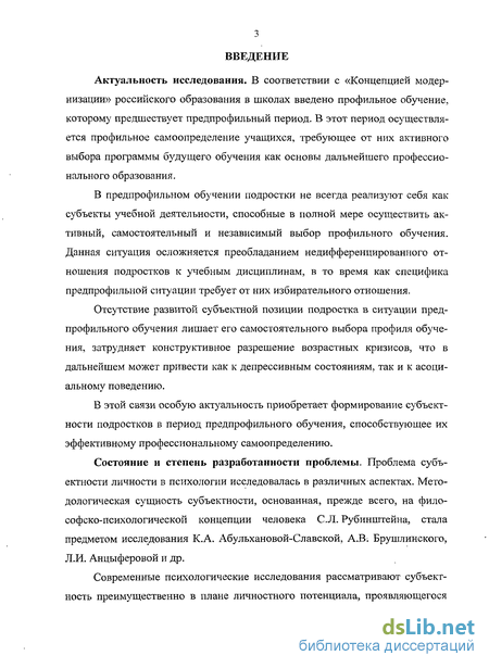 Теоретической основой в изучении формирования субъектности подростков в ситуации предпрофильного обучения выступили идеи возрастного развития (Л.С. Выготский, А.В. Петровский, Э. Эриксон и др.); положения гуманистической психологии (Ш.А. Амонашвили, К. Роджерс, В. Франкл и др.); исследования о психологическом сопровождении профессионального самоопределения учащихся (М.Р. Битянова, С.Г. Косарецкий, Н.С. Пряжников, С.Н. Чистякова и др.); теории формирования потребностей и мотивации (Е.П. Ильин, С.Б. Каверин, А. Маслоу и др.); теоретические положения о семье и родительско-детских отношениях (Н.А. Коваль, В. Сатир, Л.Б. Шнейдер и др.); научные представления о рефлексивном феномене в жизни и деятельности (И.Н. Семенов, С.Ю. Степанов, Г.П. Щедровицкий и др.), а также работы по проблемам предпрофильного обучения (Н.С. Пряжников, Г.В. Резапкина, М.Ю. Савченко и др.).