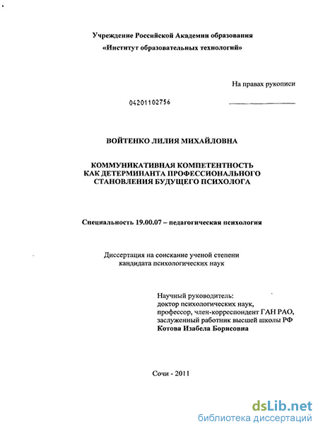 4. Разработать программу целостного развития коммуникативной компетент ности студентов - будущих психологов в единстве учета внешних и внутрен них условий их профессионального становления.