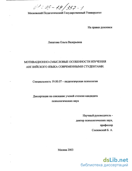 Цель исследования: изучение особенностей мотивационно-смысловой сферы современных учащихся и реализация этих особенностей в психолого-педагогической практике обучения английскому языку.