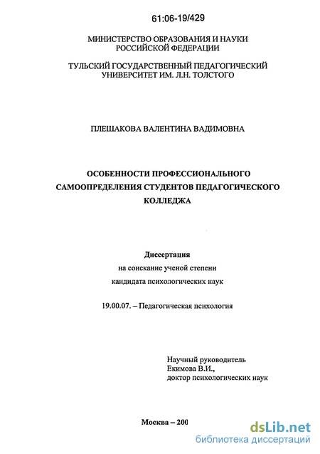 Провести экспериментальное исследование особенностей профессионального самоопределения студентов педагогического колледжа.
