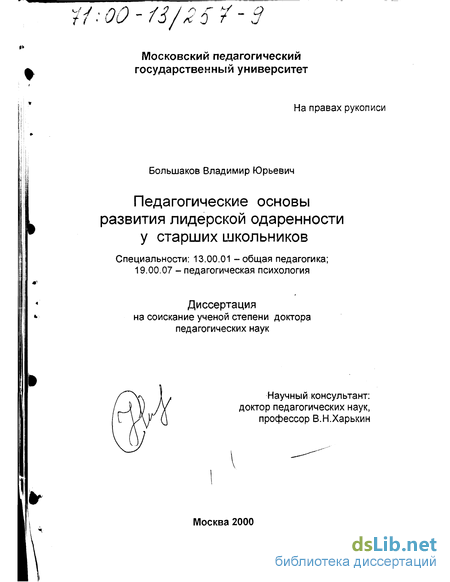 доказательство того, что основными критериями лидерской одаренности являются: высокая мотивацияя, выдающиеся способности (интеллектуальные, коммуникативные, суггестивные и др.) и креативность;
