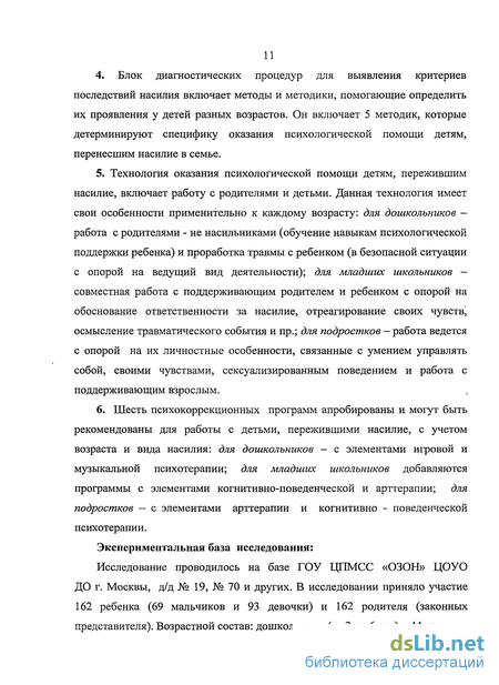 Предмет исследования: особенности оказания .психологической помощи детям, перенесшим различные виды насилия в семье.