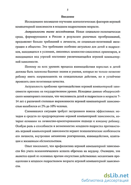 Исследование посвящено изучению психологических факторов игровой компьютерной зависимости в младшем подростковом возрасте.