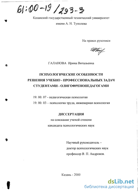 Продолжают развиваться исследования в области педагогической психологии высшей школы (Г. В. Акопов, В. П. Андронов, Ю. В. Варданян, А.А.Вербицкий, Д. В. Вилькеев, Р. В. Габдреев, Э. Ф. Зеер, И. А. Зимняя, С.Калмыков, Н. Н. Нечаев, Е. К. Осипова, К. М. Романов, Н. Языков и др.) [4; 5; 6; 24; 34; 35; 37; 40; 71; 73; 82; 146; 147; 154; 155; 179; 180]. В рамках гуманитарной парадигмы высшего профессионального образования строить процесс подготовки студентов к решению профессиональных задач возможно только на основе обобщенной теоретической модели профессионального