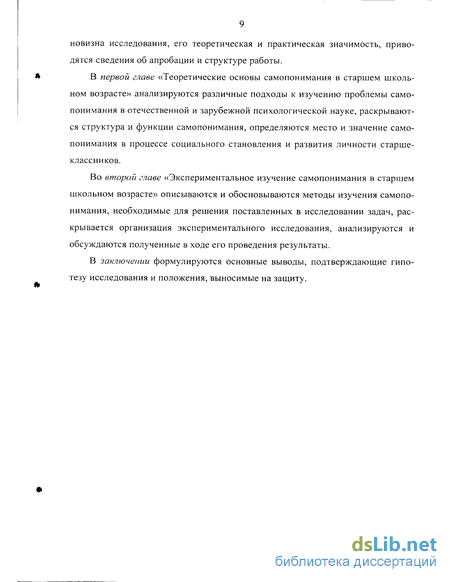 ГЛАВА I. Теоретические основы самопонимания в старшем школьном возрасте 10
