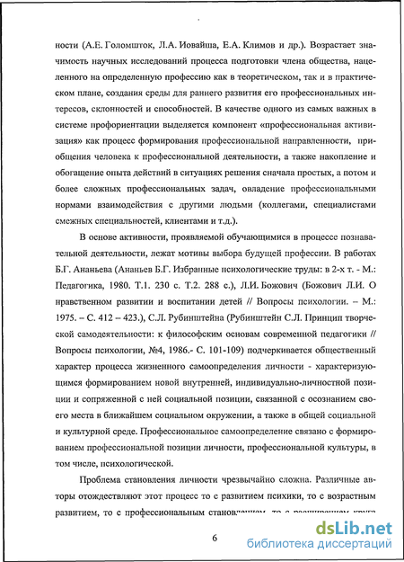В основе активности, проявляемой обучающимися в процессе познавательной деятельности, лежат мотивы выбора будущей профессии. В работах Б.Г. Ананьева (Ананьев Б.Г. Избранные психологические труды: в 2-х т. - М.: Педагогика, 1980. Т.1. 230 с. Т.2. 288 с), Л.И. Божович (Божович Л.И. О нравственном развитии и воспитании детей // Вопросы психологии. - М: 1975. - С. 412 - 423.), С.Л. Рубинштейна (Рубинштейн С.Л. Принцип творческой самодеятельности: к философским основам современной педагогики // Вопросы психологии, №4, 1986.- С. 101-109) подчеркивается общественный характер процесса жизненного самоопределения личности - характеризующимся формированием новой внутренней, индивидуально-личностной позиции и сопряженной с ней социальной позиции, связанной с осознанием своего места в ближайшем социальном окружении, а также в общей социальной и культурной среде. Профессиональное самоопределение связано с формированием профессиональной позиции личности, профессиональной культуры, в том числе, психологической.