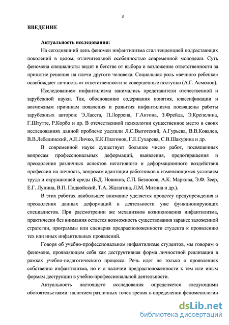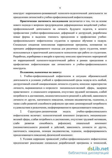 Научная новизна исследования: Обобщено, уточнено и конкретизировано понятие инфантилизма в контексте учебно-профессиональной деятельности