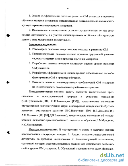 Методологической основой работы являются теоретические представления о психологической природе и сущности мышления (С.Л.Рубинштейн [118], О.К.Тихомиров [132]), теоретические положения отечественной психологической науки о конкретной исторической обусловленности умственного развития (Л.С.Выготский [30], В.В.Давыдов[46], А.Н.Леонтьев [90] [91],Д.Б.Эльконин), теоретические положения об использовании личностно-ориентированного подхода в обучении(Л.М.Фридман, И.С.Якиманская).