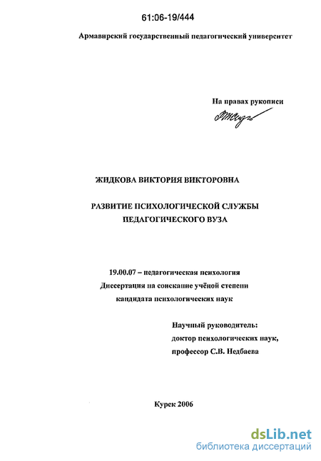 - Организация и опыт работы психологической службы вуза (на примере Армавирского государственного педагогического университета)