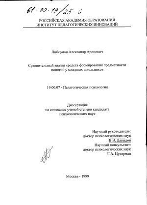 Цель исследования: Разработать и описать средства формирования полноценных теоретических понятий у младших школьников на основе схематических средств организации совместной учебной деятельности и исследовать их эффективность методом формирующего эксперимента. Эффективность предлагаемых нами средств и способов формирования предметности математических и лингвистических понятий сравнивалась с результатами формирования этих же понятий теми средствами, которые существуют в современной теории и практике организации учебной деятельности младших школьников.
