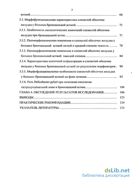 3.5.1. Особенности гистологических изменений слизистой оболочки желудка при бронхиальной астме .. 71