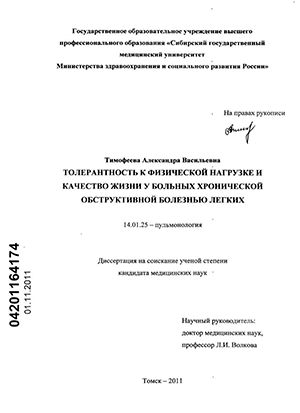 качества жизни [GOLD, 2006]. У определенной категории больных хронической обструктивной болезнью легких проводить физическую реабилитацию без лекарственной поддержки невозможно [Мещерякова Н.Н. Белевский А.С. 2007]. Единственным препаратом, который показал улучпгение физического состояния больных хронической обструктивной болезнью легких, является пролонгированный бронхолитик тиотропия бромид (Спирива). Таких исследований пока мало и представляется важным продолжить изучение влияния Спиривы на толерантность к физической нагрузке и качество жизни у больных хронической обструктивной болезнью легких.