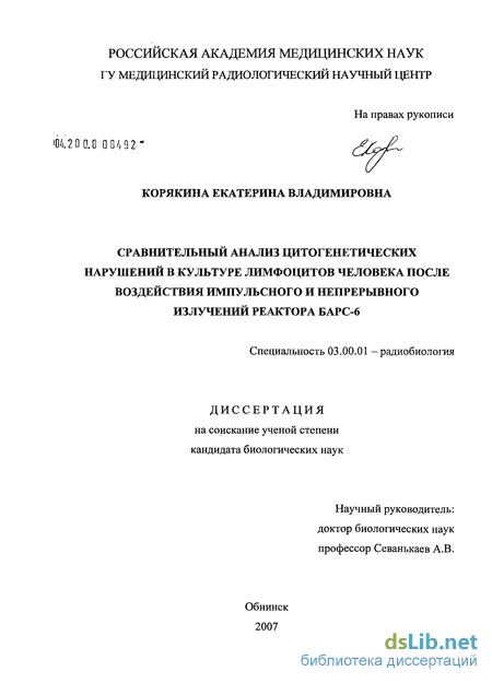 Апробация работы. Материалы диссертационной работы представлены на IV съезде по радиационным исследованиям (Москва, 2001); III съезде по радиационным исследованиям «Радиобиология и радиоэкология» (Киев, 2003); Всероссийской научно-практической конференции, посвященной 25-летию НИИ онкологии «Современное состояние и перспективы развития экспериментальной и клинической онкологии» (Томск, 2004); II Евразийском конгрессе по медицинской физике и инженерии «Медицинская физика - 2005» (Москва, 2005); 15th International Biophysics Congress «Environmental Biophysics» (Каир, 2005); V съезде по радиационным исследованиям «Радиобиология, радиоэкология, радиационная безопасность» (Москва, 2006); 4th international Workshop on Space Radiation Research and 17th Annual NASA Space Radiation Health Investigators' Workshop (Москва - Санкт-Петербург, 2006).