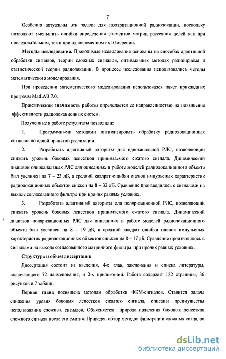 Таким образом, исследовательскую работу по синтезу адаптивных шиоритмов снижения боковых лепестков отклика на выходе фильтра сжатия ФКМ радиолокационных сииіалов, рассеянных сложными радиолокационными объектами, можно считать актуальной.