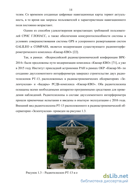 Для реализации насущных потребностей современного общества в высокоточном координатно-временном обеспечении разработаны и активно применяются спутниковые радионавигационные системы (СРНС). Неотъемлемой частью наземного сегмента СРНС ГЛОНАСС, обеспечивающей фундаментальную поддержку комплекса, является радио-интерферометрическая сеть со сверхдлинной базой (РСДБ) «Квазар-КВО».