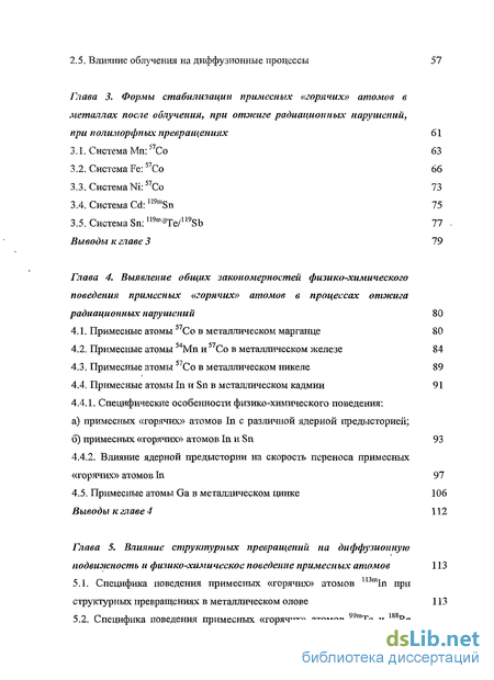 Глава 3. Формы стабилизации примесных «горячих» атомов в металлах после облучения, при отжиге радиационных нарушений, при полиморфных превращениях 61