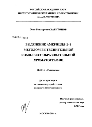 Сложный химический и радиохимический состав растворов, образующихся при переработке различных амфшіийчюдержаших концентратов, предопределяет необходимость проведения широкого круга исследований, необходимых для создания способов выделения америция-241 высокой степени чистоты из реальных растворов ПО «Маяк» методом ВКХ.