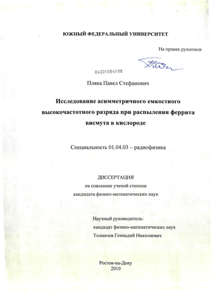 Таким образом, задача исследования асимметричного емкостного высокочастотного разряда при распылении в кислороде сложных оксидов, в частности со свойствами мультиферроика, в настоящее время является актуальной и представляет несомненный научный и практический интерес.