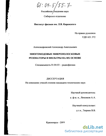 ГЛАВА I Многомодовые резонаторы и фильтры на их основе