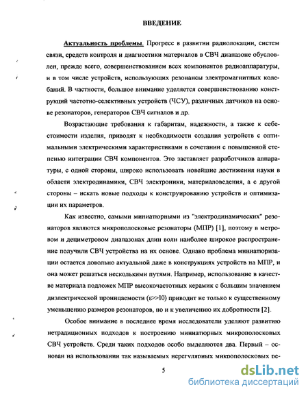 Как известно, самыми миниатюрными из "электродинамических" резонаторов являются микрополосковые резонаторы (МНР) [1], поэтому в метровом и дециметровом диапазонах длин волн наиболее широкое распространение получили СВЧ устройства на их основе. Однако проблема миниатюризации остается довольно актуальной даже в конструкциях устройств на Ml IP, и она может решаться несколькими путями. Например, использование в качестве материала подложек ЫПР высокочастотных керамик с большим значением диэлектрической проницаемости (»10) приводит не только к существенному уменьшению размеров резонаторов, но и к увеличению их добротности [2].