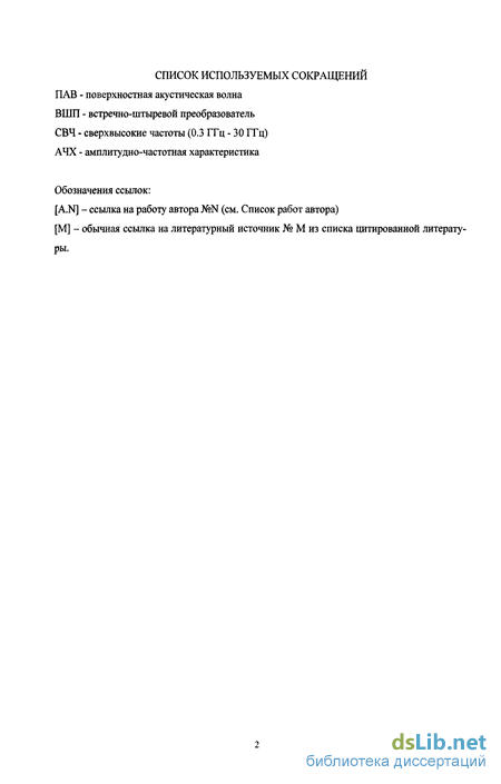 Устройства на ПАВ уже давно используются в промышленных приборах связи, радиолокации, военной технике [1-3], а в настоящее время нашли широкое применение и в бытовой аппаратуре, такой, например, как телевизоры и сотовые телефоны [4]. Эти устройства осуществляют аналоговую обработку информации, а в качестве объекта переноса информации используют акустические волны в кристаллах. Неотъемлемым элементом данных устройств является преобразователь электрического сигнала в акустическую волну, выполняющий также и обратное преобразование акустической волны в электрический сигнал. Конструкция преобразователя зависит от требований к его амплитудно-частотной характеристике (АЧХ), фазочастотной характеристике (ФЧХ), к уровню ложных сигналов, а также зависит от вида используемой волны (релеевской [5,6], Гуляева-Блюстейна [7], приповерхностных объемных акустических волн [8-Ю]), требований к температурной стабильности и других факторов. В случае применения поверхностных волн на пьезоэлектрических кристаллических подложках наиболее удобно использовать встречно-штыревой преобразователь (ВШП) [11-13].