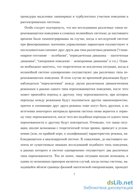 зом встроен в анализируемую систему или являться составляющей частью измерительной аппаратуры). В таких случаях наблюдающиеся режимы не удастся классифицировать и описать в рамках существующих теоретических представлений о перемежающемся поведении, что может существенно усложнять, например, работу с приборами и устройствами или осуществление медицинской диагностики. Именно поэтому в диссертационной работе большое внимание уделено изучению возможного сосуществования двух различных типов перемежающегося поведения в нелинейных динамических системах. В силу масштабности рассматриваемой проблемы, ее изучению посвящены вторая и третья главы диссертационной работы. В рамках изучения данной проблемы была разработана и апробирована теоретическая модель, которая описывает поведение систем, в которых одновременно реализуются два типа перемежаемости, а также изучено несколько систем, в которых наблюдается данное явление.