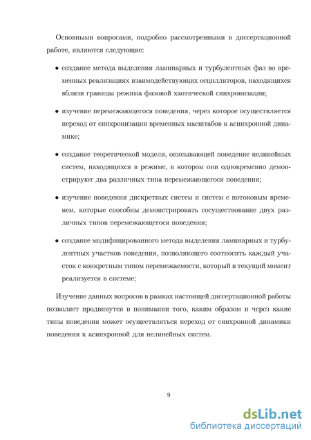 Изучение данных вопросов в рамках настоящей диссертационной работы позволяет продвинутся в понимании того, каким образом и через какие типы поведения может осуществляться переход от синхронной динамики поведения к асинхронной для нелинейных систем.