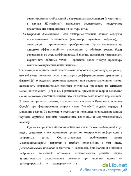 малой длительности [27] и т.д. Практические применения теории вейвлетов