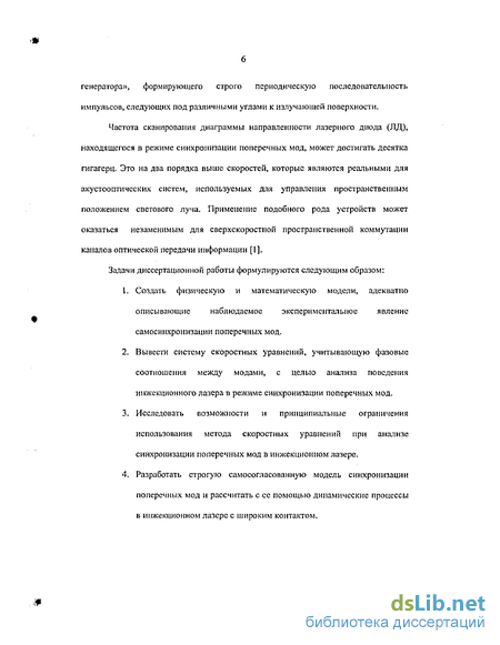 В рамках обозначенных выше проблем цель работы - разработка теоретических методов исследования явления синхронизации поперечных мод в инжекционном лазере, для анализа причин разрушения режима самосинхронизации и получения полностью стабильной картины сканирования. Применительно к инжекционному лазеру планарной геометрии в работе решались следующие задачи