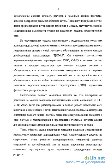 Из отечественных средств аналитического моделирования локальных вычислительных сетей следует отметить Комплекс программ аналитического моделирования систем и сетей массового обслуживания на основе методов диффузионной аппроксимации "ДИФАР". Он позволяет рассчитывать вероятностно-временные характеристики СМО, СеМО и сетевых систем, задавая в качестве параметров два момента входных потоков и обслуживания, что позволяет исследовать поведение систем в широком диапазоне изменения, как средних значений, так и дисперсий потоков и обслуживания, а также найти оптимальное построение сетевых систем по значениям вероятностно-временных характеристик (ВВХ), адекватных фактическим распределениям.