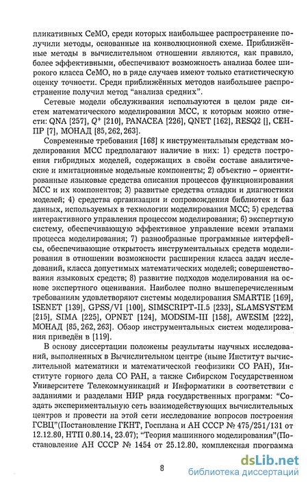 Сетевые модели обслуживания используются в целом ряде систем математического моделирования МСС, к которым можно отнести: QNA [257], Q+ [210], PANACEA [226], QNET [162], RESQ2 [], СЕН-ПР [7], МОНАД [85,262,263].