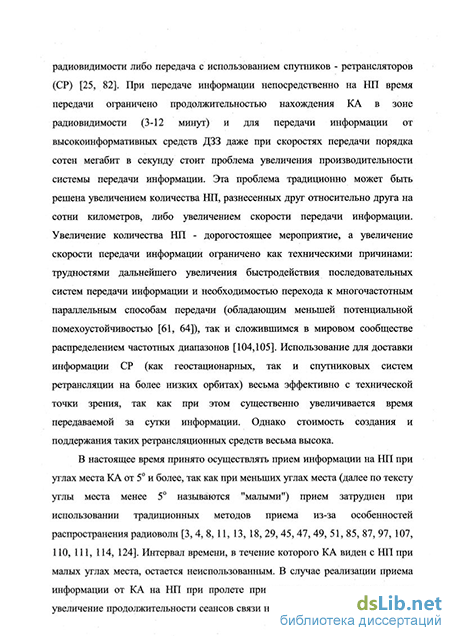 Как известно [51, 110, 111], на распространение радиоволн сантиметрового диапазона при малых углах места оказывают влияние ионосфера, тропосфера и участок земной поверхности, находящийся вдоль трассы распространения сигнала на пути КА - НП. Влияние ионосферы и тропосферы выражается в эффектах рефракции, деполяризации и поглощения радиоволн. Отклонение направления прихода радиоволны, вызванное рефракцией, не превышает 15 угловых минут, подлежит прогнозированию и компенсируется автоматическим наведением приемной антенны по максимуму приходящего сигнала [83, 111,81]. Задержка радиоволн из-за рефракции может достигать 330...500 не [81] и для рассматриваемого диапазона волн в используемой полосе частот порядка 200 МГц может считаться одинаковой для всех спектральных составляющих. Относительная величина рассеяния радиосигналов по частоте составляет порядка 10"12 [81], что не превышает величину относительной нестабильности частоты задающих генераторов при передаче информации. Как правило, при передаче информации с КА ДЗЗ используются радиоволны с круговой поляризацией, для которых на частотах свыше 5 ГГц эффект деполяризации приводит к несущественным энергетическим потерям [81 и 99]. Поглощение радиоволн при углах места, ч близких к 0, в среднем больше, чем при угле места 5, на величину порядка 2...2,5 дБ [51, 111]. Таким образом, влияние ионосферы и тропосферы на прием информации при малых углах места в сантиметровом диапазоне радиоволн не приводит к заметному рассеянию сигналов по частоте и времени и эквивалентно дополнительным энергетическим потерям, которые могут быть учтены при проектировании систем передачи информации. Существенное влияние на прием сигналов при малых углах места оказывает многолучевость, обусловленная рассеянием радиоволн земной поверхностью.