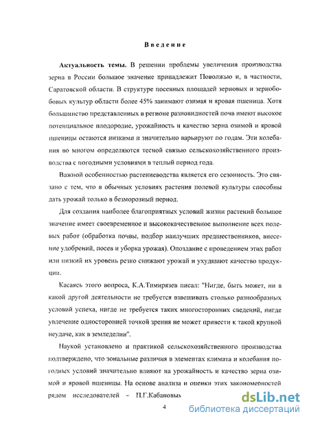 Наукой установлено и практикой сельскохозяйственного производства подтверждено, что зональные различия в элементах климата и колебания погодных условий значительно влияют на урожайность и качество зерна озимой и яровой пшеницы. На основе анализа и оценки этих закономерностей рядом исследователей - П.Г.Кабановым, Е.С.Улановой, Р.Э.Давидом,